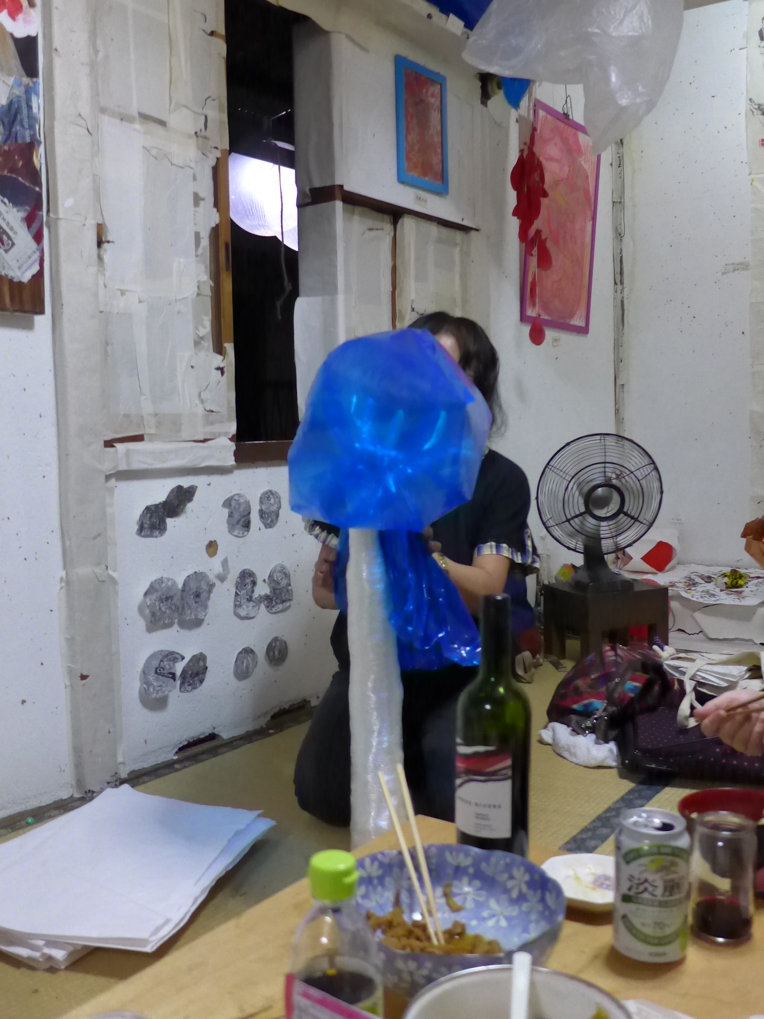 この間、大阪黒門市場近く、昔の長屋の2階にある「御蔵跡」というART SPACE(土師清治さんがオープンして我々のアジトになっているのです)、そこで、「春成こみち」さんの「SADA」というタイトルの個展をみた。これは手前みそで恥ずかしいのですが、土師さんから「遠隔操作」という事でテーマを出してくれと頼まれて、僕の堀尾貞治の「貞」から取ったモノ。何の事か解らへんのですがそれをテーマに、春成こみちさんの感性で英文字を使用して「SADA」と云う文字を、長屋の2階いっぱいに展開されたものです。
