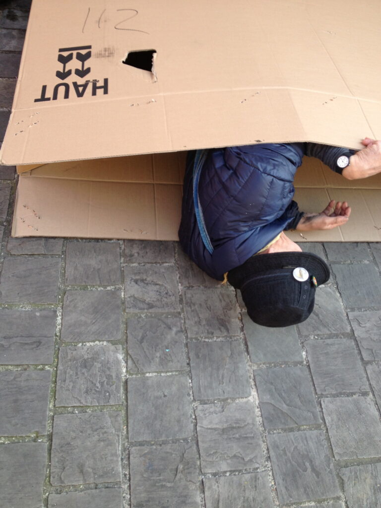 そして5月14日はオープンの日、簡単な一分打法のパフォーマンスをした。そこへこれからオープンするプラスワンとかいう、新しい美術館のキュウレータが来ていて、そこから聞く話も信じられないような次の新しい事が展開されるのだと。その夜メインの通りの真ん中に真っ白な和布団、3m角くらいの布団に上布団をかむり寝ている人を見る。これにはビックリで、画廊の人に警察は何も言わんのかと聞くと、笑いながらこれは昔からこのままと言う事であった。それでその昼にも空中のメインストリートに同じような布団があった。不思議な????。このように、超高層ビルの谷間に百年位ズレた昔のダウンタウンがそのままである。昔、神戸の三の宮あたりに終戦後のこっていた、靴修理や安物の衣服、日用品の雑貨。観光客相手の土産もの類等々。日々の生活、高級とは全く反対の空気があって僕は嬉しい。興奮を続けた。又、三百米程平地から山上へ向かう所から、高層ビルがぎっしり林立している間を縫って頂上近くまで、エスカレータが付いていて、僕は原口さんと一緒に頂上近くまで行ったが、その間ビルとビルの間の景観は作品(新しい美術館)の中を移動してるような充実と興奮をそのままに、香港の街の空気を、むさぼり食ったと言う感じでした。一日、九龍島といら香港島の前の島に連れて行ってもらい、又そこから見る香港島のビルのかたまり風景も圧巻で、この街の素晴らしさは永い間の中で植民地とか色々とあってそれも全部通過して、今そのまま貧富の差の形を残している。その過渡期かどうか?に現場を生きていて見れた事は最高に嬉しい時間でした。大昔(1975年)にパリの街に乞食がいっぱいいてビックリした事がある。それを先輩村上三郎に言ったら、貧富の差が大きいのは国が豊かだからと聞いた。何か判らんが僕も今の香港にはそのことを感じた。 29、May、2015